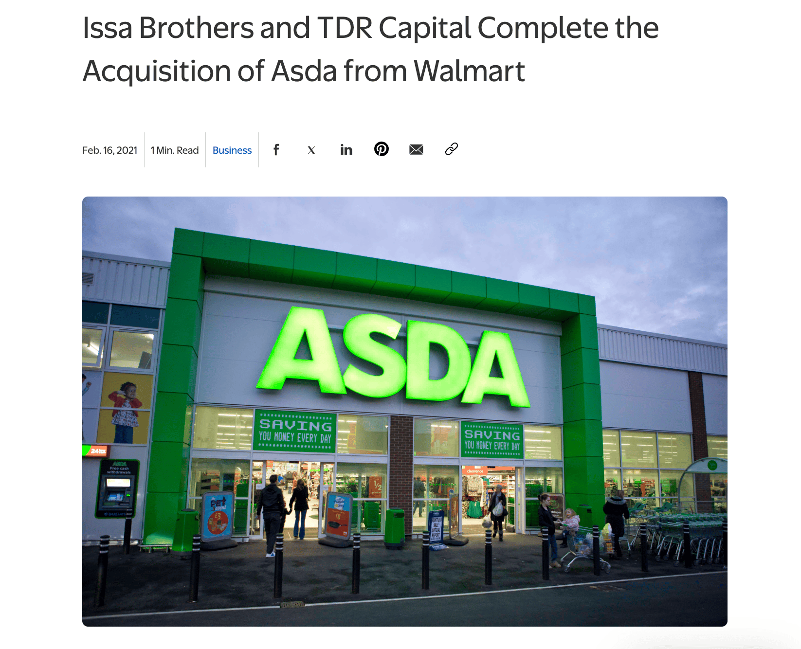 Back in 2021, Asda was bought by TDR Capital (a private equity firm) and the Issa brothers (two British billionaire businessmen — good luck saying that three times fast) for £6.8 billion.