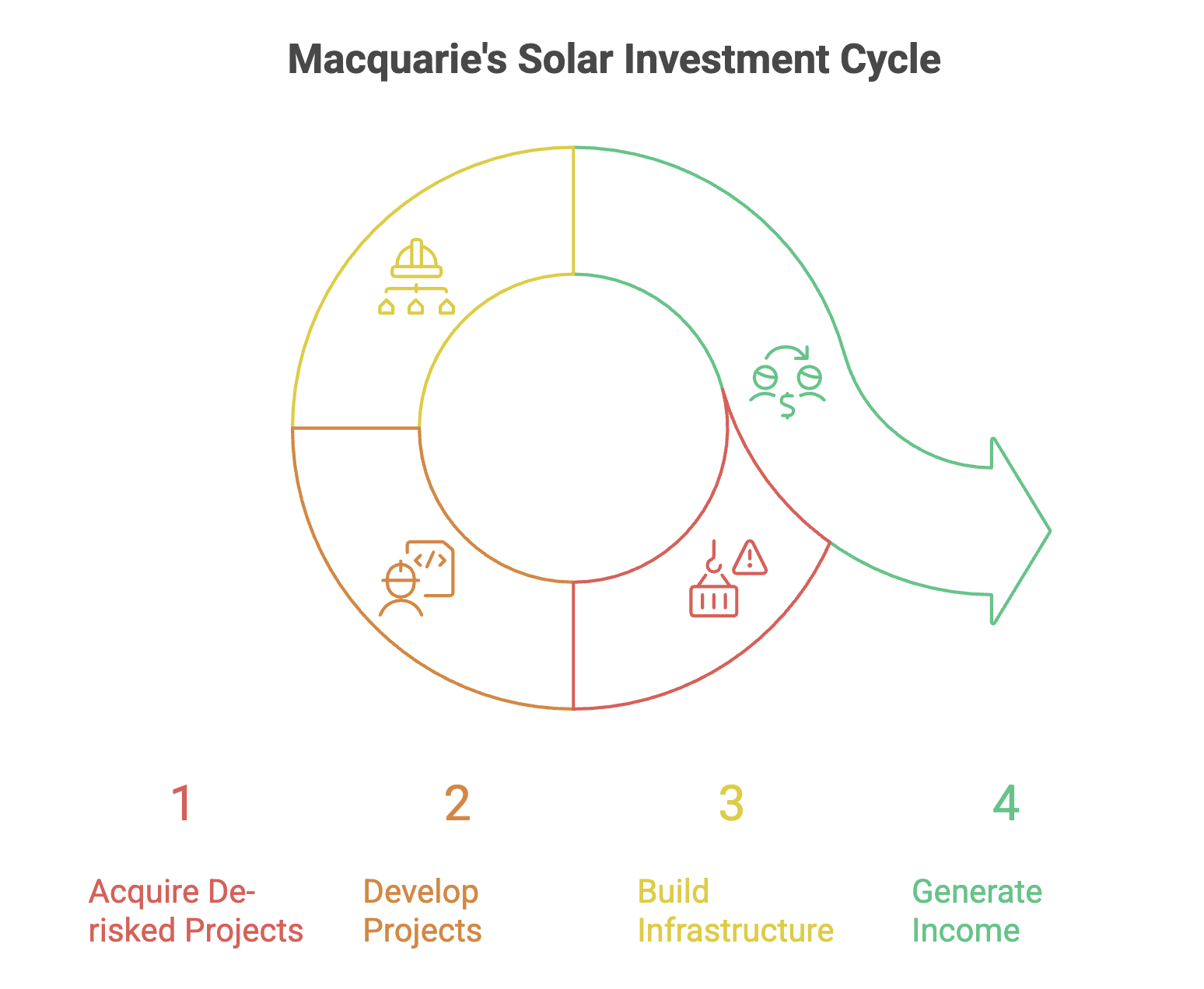 Macquarie has the money to build and run these projects. When the solar farms and batteries go live, they sell power to the grid or to energy suppliers. That creates stable, long-term income for Macquarie and its investors.