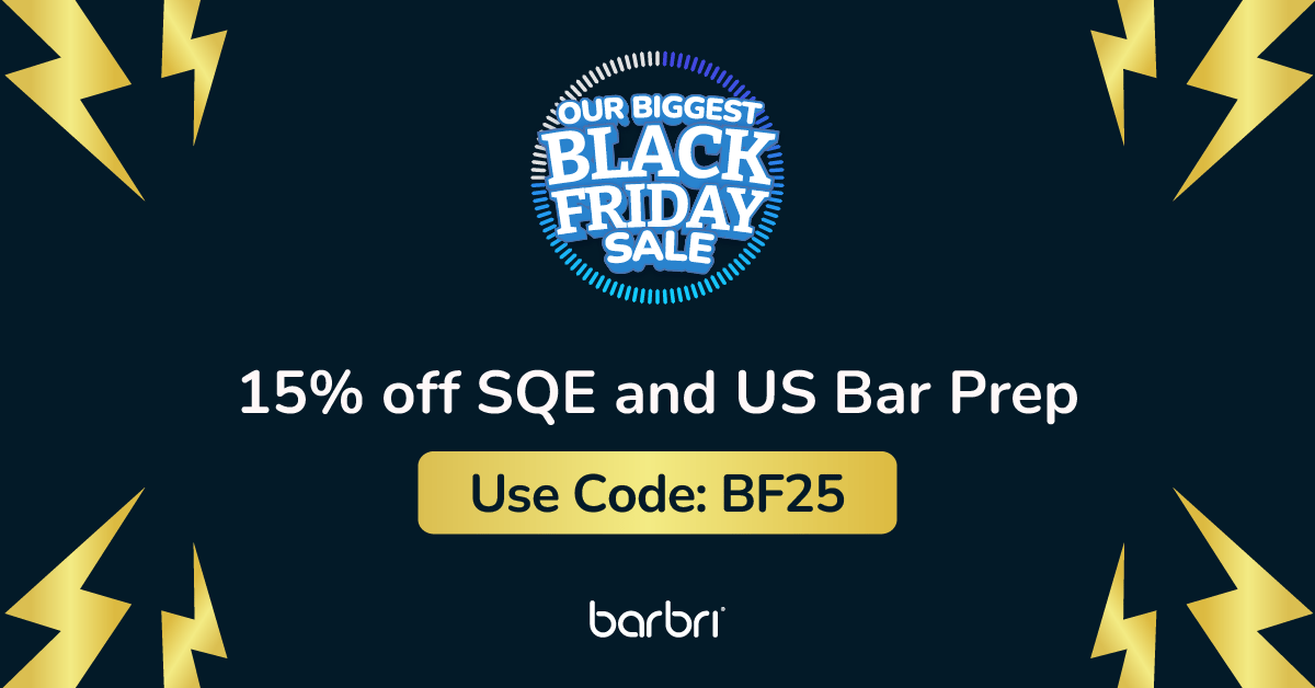 Right now you can get 15% off SQE1 Prep, SQE2 Prep and BARBRIâs Foundations in Law course (oh, and even US Bar Prep).