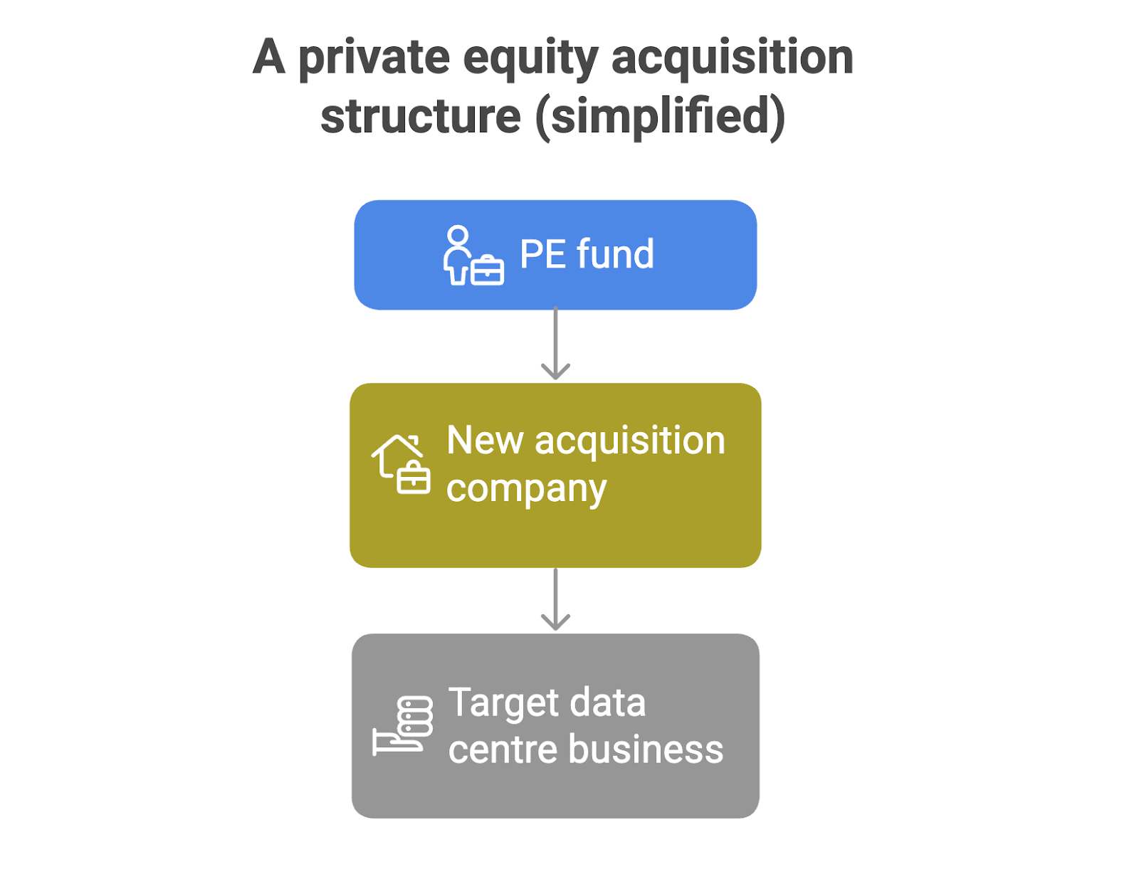 In private equity deals, the buyer doesn’t usually purchase the target company directly. Instead, lawyers set up one or more new companies to acquire and hold the business – they sit between the PE fund and the target business.